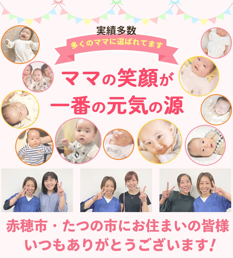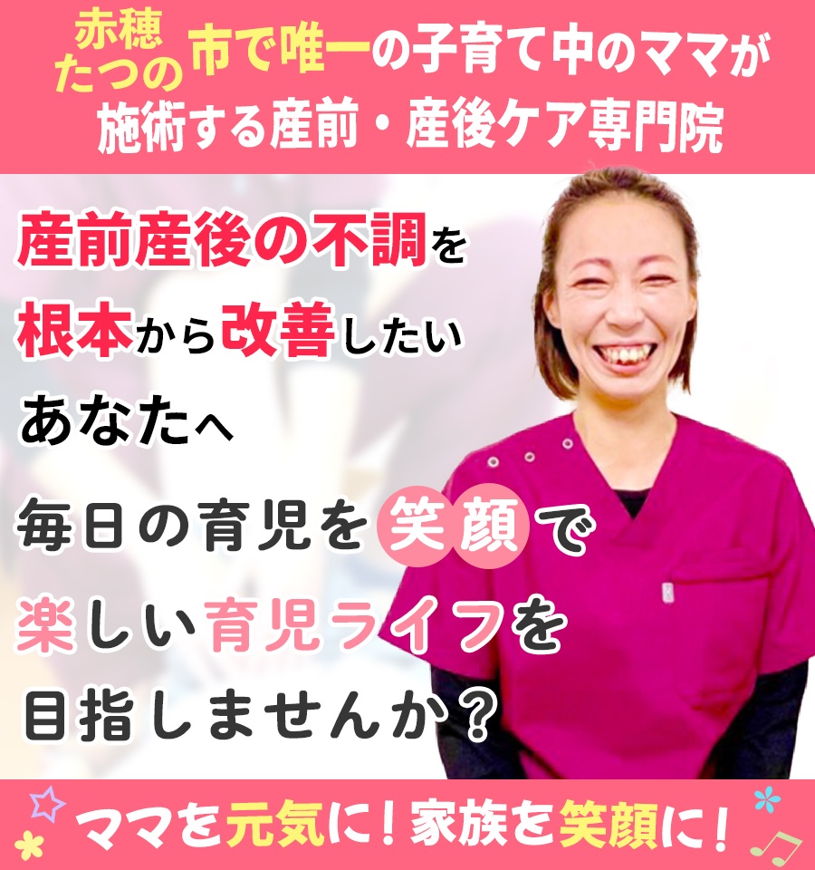 産後マタニティ専門院のたつの/赤穂ママ友サロンに来院し、その不調の根本改善をしませんか?